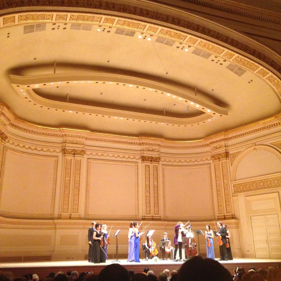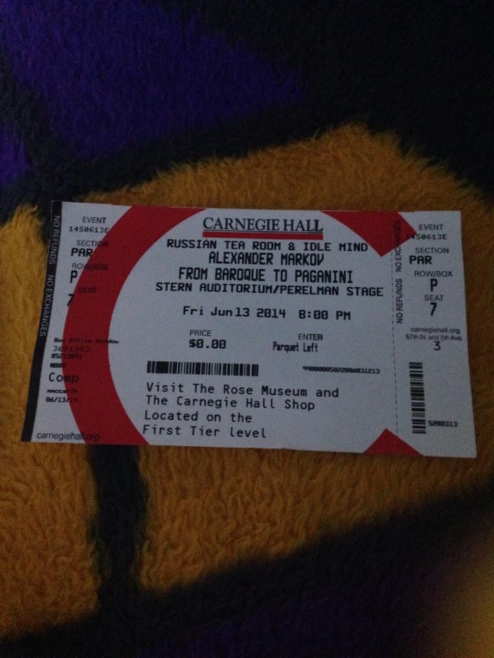 Thanks to this awesome website called Club Free Time I got a (almost) free ticket to go see a concert at Carnegie Hall tonight. It was magical. I’ve never been there before and the moment you walk into the auditorium (I was in the Stern Auditorium) history kind of slaps you in your face immediately. The first act was a bluegrass band called Monroe Crossing — they were great, but I can’t say it was my favorite bluegrass show. After several songs by Monroe Crossing they brought out a massive choir. It was a mixture of gospel choir music with bluegrass — now that was interesting! I LOVE choral music. The second act was by the New York Wind Symphony who performed two pieces — the first had a trombone soloist. I rather enjoyed the first piece, but was pleasantly surprised by the second. It was called Danzon 2 — inspired by Mexican dances. That was by far my favorite piece of the night; I couldn’t stop wiggling in my seat.
